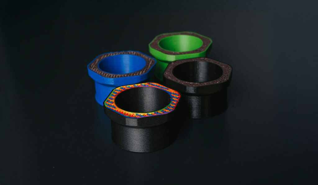 On two identical machines with the same process parameters (printing speed, etc.), four parts were printed in less time using multi-nozzle technology than only one part using single-nozzle technology.